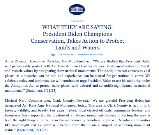 The Mountain Pact sent out this media release on Tuesday which had quotes that were included in the White House’s What They are Saying wrap up.